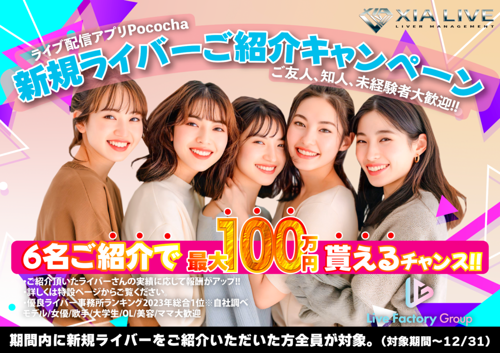 対象者:期間内に新規ライバー様をご紹介いただいた全員が対象になります